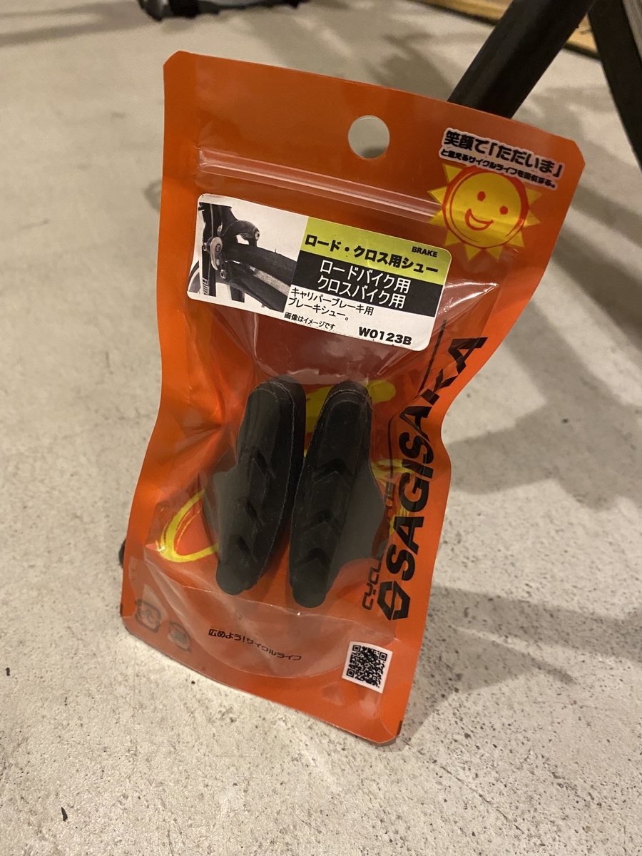 YouTube見ながらブレーキの効きを調整して、なんとかかんとか騙し騙し乗ってたんですが、ブレーキシューとリムの当たる音が甲高い音になってきたんで、重い腰上げてみようかと。