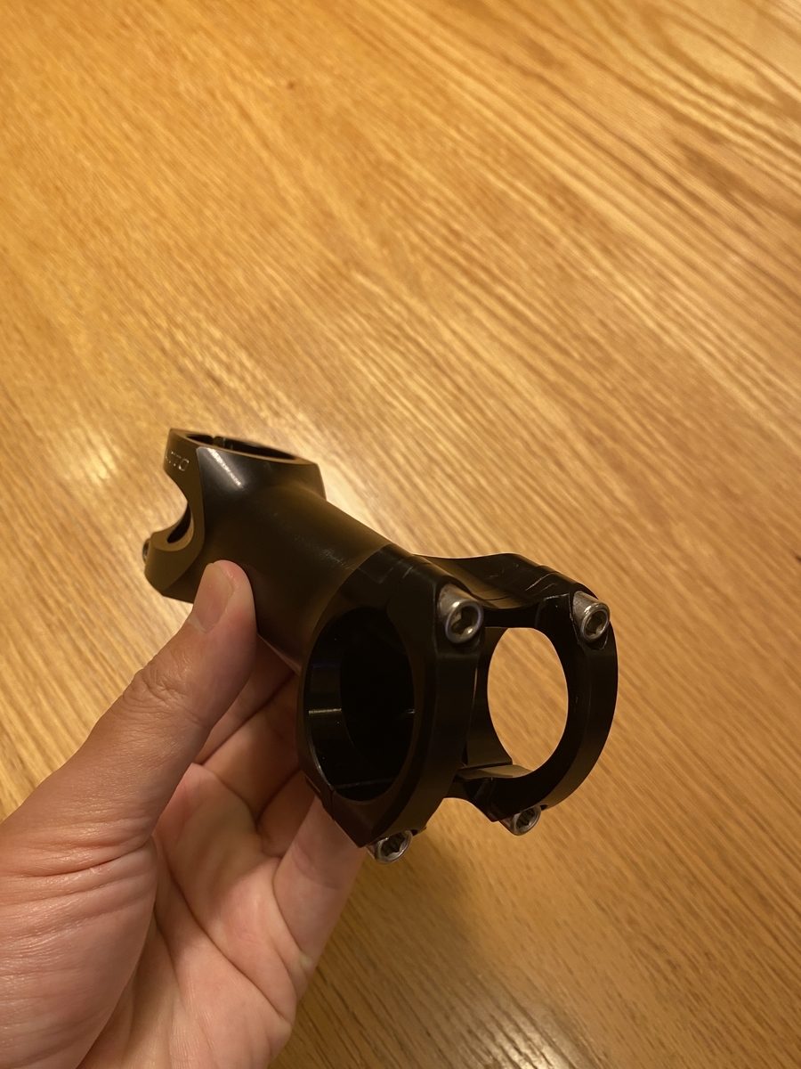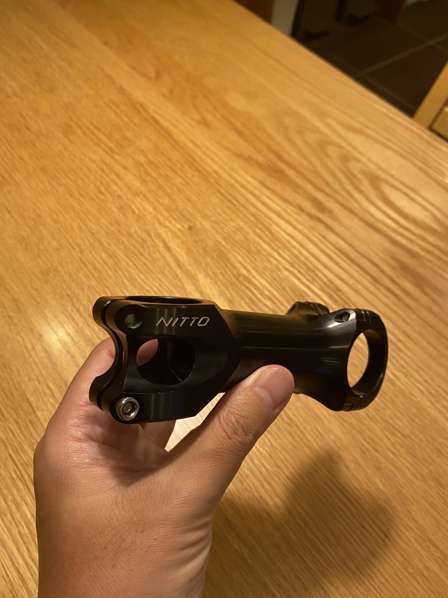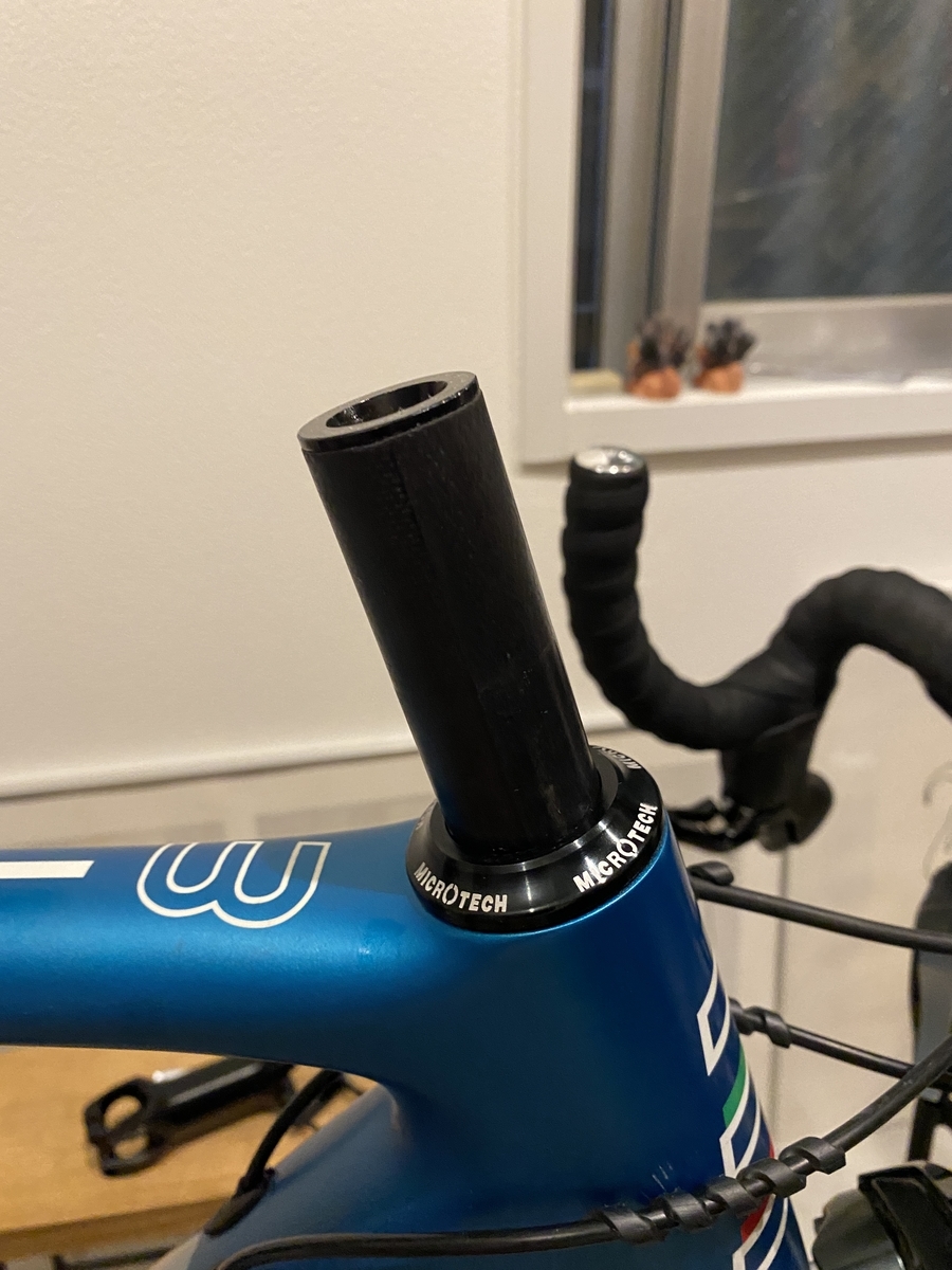 以前付いてたMicroTechのステムはフォークコラム部分が隠れてたんですが、NITTOは見えるデザイン。ちゃんとカーボンでした。安心しました。