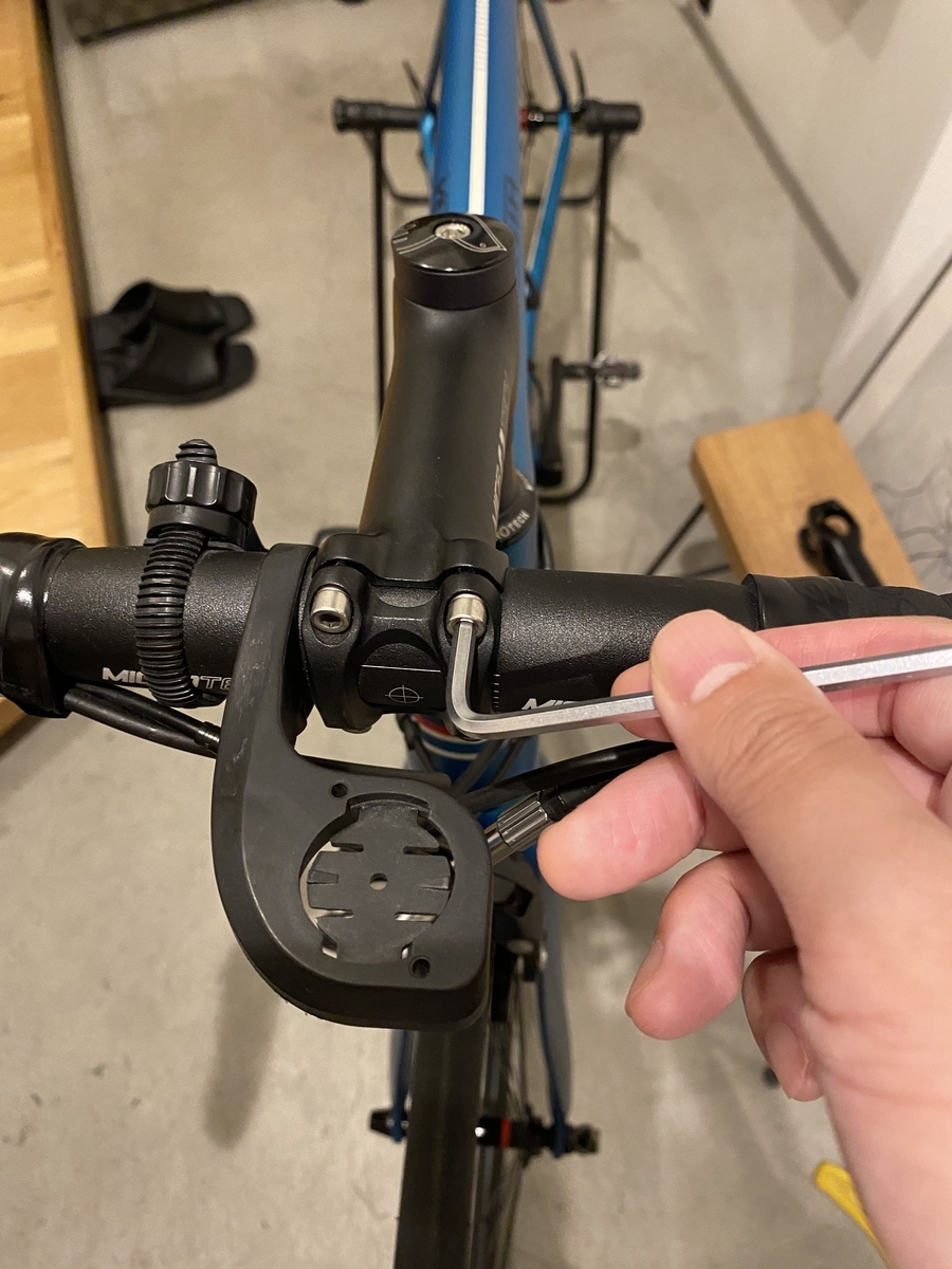 ではではドキドキしながら交換作業開始します。(ロードバイク スペース ステム交換 で検索済み)ちなみにレンチは4mmです。